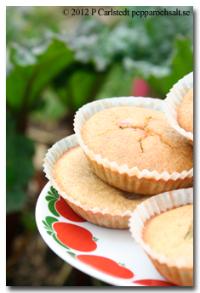 Nu sträcker de slanka röda stjälkarna på sig i trädgården. Dags att njuta av rabarber, kanske i muffins?